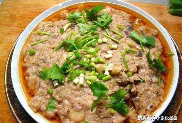 4、将拌好的肉末放入广口深盘中。蒸锅里的水烧开后,把盘子移到蒸锅里,用大火蒸15分钟左右。关火后趁热撒上小葱。