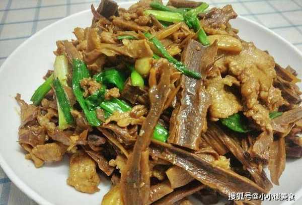 材料:笋干三个,冷水泡12小时,切片待用,生粉腌肉片,盐,生抽,葱适量,蒜瓣适量,少许生抽