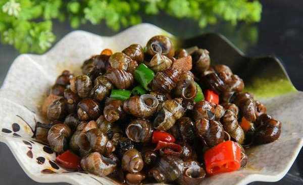 材料:田螺、干辣椒、花椒、西洋菜、泡姜、大蒜、泡椒、味精、白糖