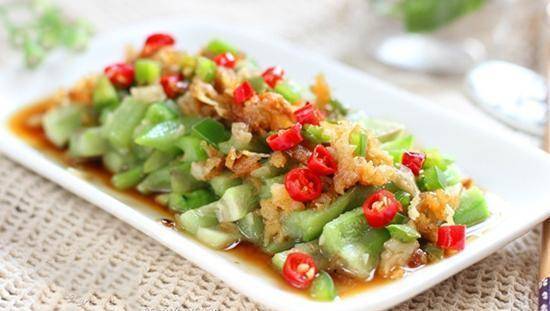 配料表:丝瓜、海米、大蒜、辣椒、花椒、生抽、植物油、盐少许