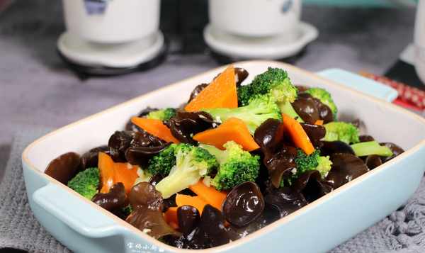 做法:1、西兰花切成小朵,用淡盐水浸泡5分钟,再换水洗净,查水备用;预先浸泡并清洗蘑菇;胡萝卜洗净切块;