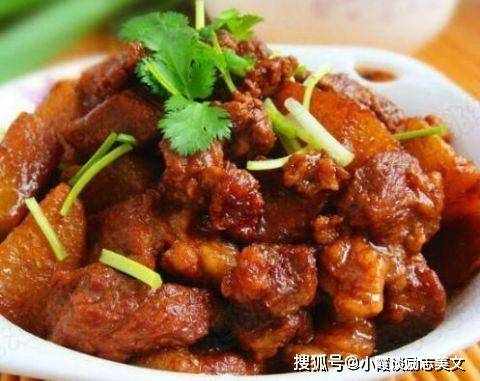 9.盖上锅盖焖煮1小时。期间注意多翻几下,以免锅底烧焦。加入萝卜块继续炖半小时。如果还有很多汤,可以开大火,让汤干得更快。