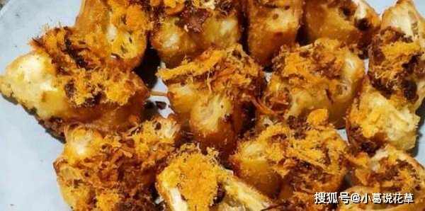 做法:1.炸好的油条面团切块,放入无油的平底锅中,用小火煎至表面酥脆,捞出备用。