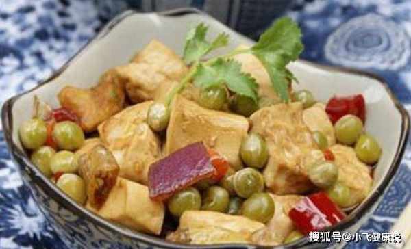 5、倒入豆腐和青豆翻炒均匀,盖上锅盖煮5分钟。