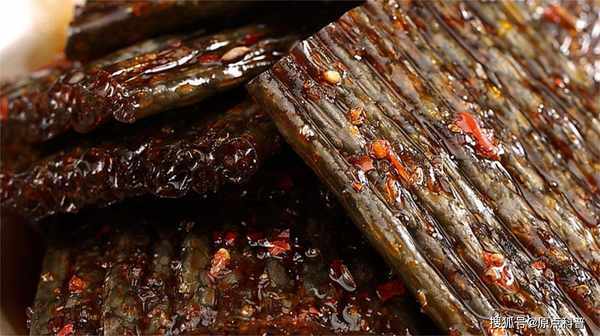 还有牛筋辣条,初中的时候在我们学校特别受欢迎,小卖铺经常断货,其味道辣中带甜,而且非常耐嚼,牙齿不好的可得当心了。