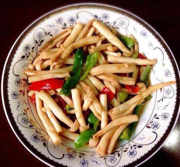 做法:1、海鲜菇洗净,切块,青椒切块;