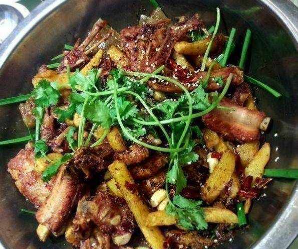 配料表:排骨、大葱、姜、蒜、料酒、食盐、白糖、味精、鸡精、淀粉、干红辣椒、小米干辣椒、青椒、红辣椒、洋葱、香菜、土豆、油、郫县西洋菜、芝麻
