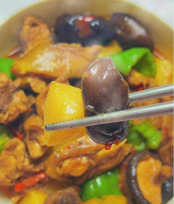 香菇土豆焖鸡是每家每户都会做的菜肴,很多地方叫“黄焖鸡”,还可以搭配一些腐竹,千张,鹌鹑蛋和木耳,鸡肉吃起来软烂入味,土豆吃起来特别粉烂,出锅后特别过瘾,越吃越想吃。