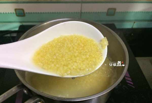 3、准备煮小米粥时,最好先用水泡一下,这样既容易煮熟,又能去除杂质。