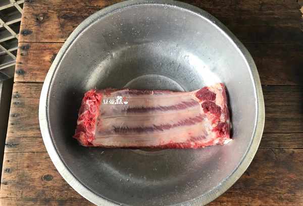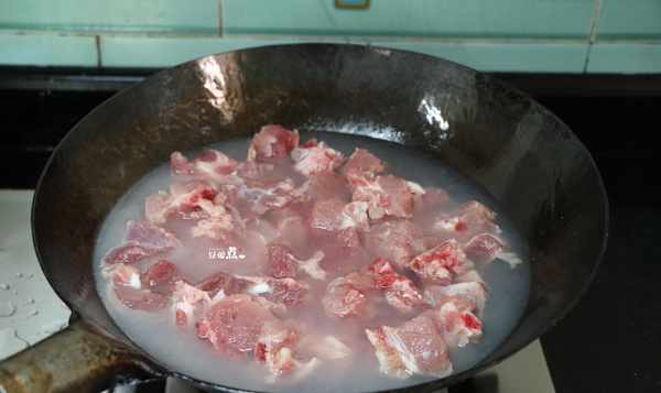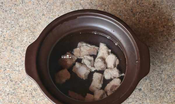 2.买回来的排骨,可以请店主帮你把排骨切成小块,方便食用。锅内倒入适量的水,将排骨放入水中略煮片刻,捞出清洗备用。
