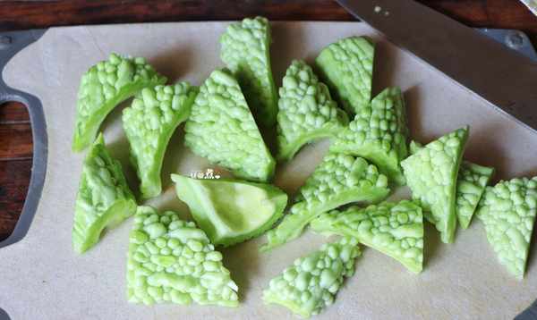PS:想吃,又怕苦瓜的苦味。我应该怎么办?然后试着用少许盐腌一会,然后把苦瓜挤出汁水洗净。这样一来,就可以去掉一部分苦瓜的苦味,是不是很简单呢?