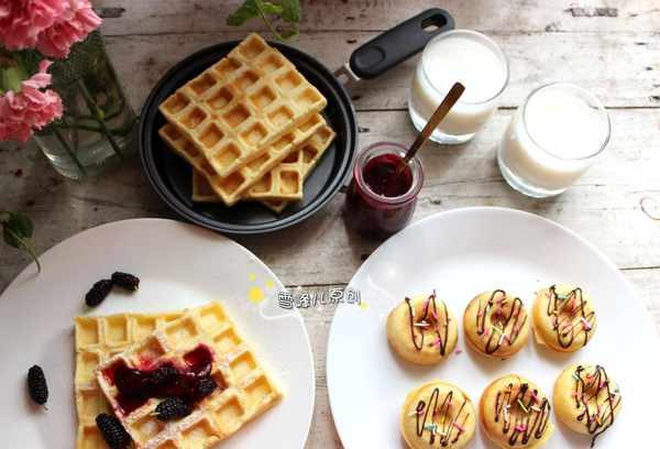 华夫饼的做法:原料:鸡蛋2个,牛奶50克,玉米油10克,无麸质面粉100克,奶粉10克,白糖30克,泡打粉3克。