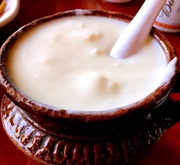牦牛酸奶是藏族人们的民间美食,是用青藏高原半野生半原始的牦牛所产的牛奶酿制而成。因产量和储存问题,市面上并不常见。