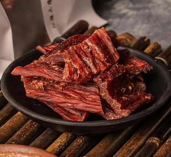 取牦牛肉的臀尖肉和豆油炒制而成,简单的烹饪就鲜美到无以复加。油脂丰腴,带来的是浓烈的牛肉香气,肌理粗壮,入口嚼劲十足,咀嚼中慢慢体会牛肉的鲜美。
