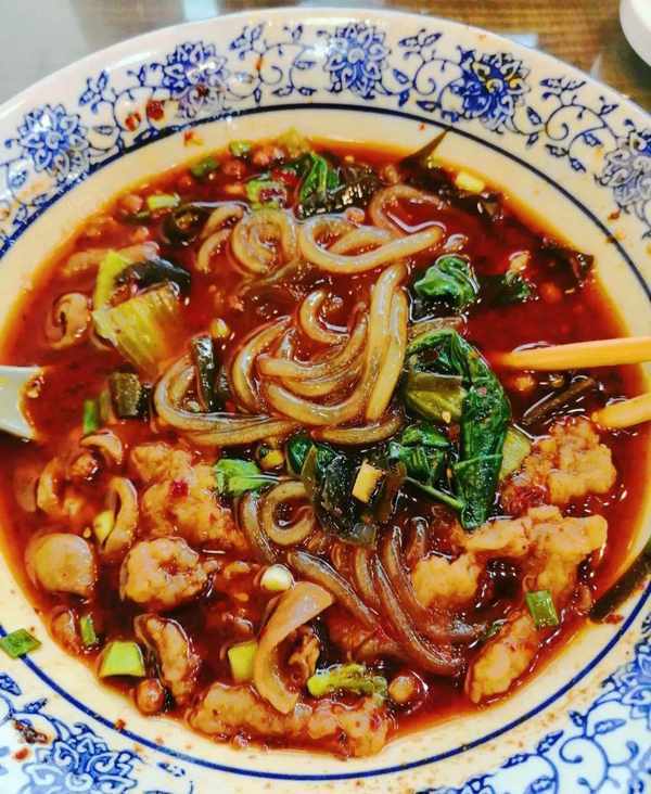 唐宝娃:我卖重庆小面、南充米粉,广东肠粉,川北凉粉、酸辣粉,凉皮等,重庆小面最好卖,其次是南充米粉和广东肠粉、招牌是重庆豌杂面肉少利润高。