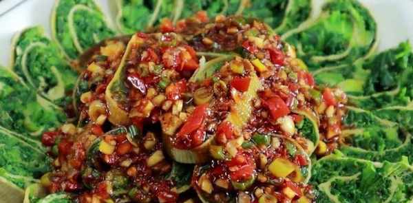 最后淋上酱汁即可上桌。这样做的荠菜卷好吃又香,蘸酱也很好吃。