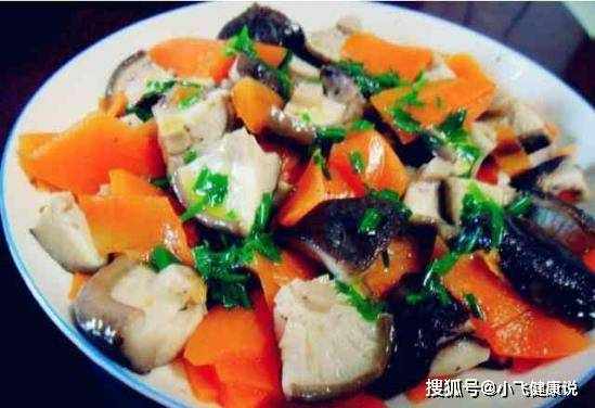 2、锅中烧开水,加入一茶匙盐,放入香菇和胡萝卜,水烧开一分钟,沥干水分;