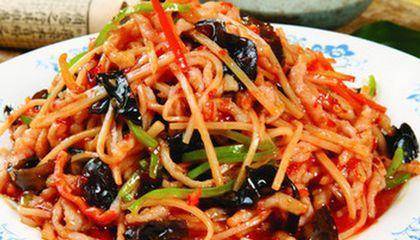 原料:猪肉150克,青椒2个,水菇适量,葱、姜、蒜、盐、料酒适量,生粉一茶匙,酱油两汤匙,老抽一汤匙酱汁、醋一汤匙、糖一汤匙、豆瓣酱一汤匙(切碎)、干辣椒切碎一汤匙