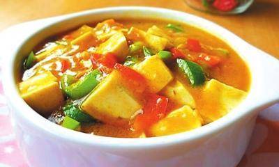 3.倒入适量的水,加入咖喱块,将酱油煮至咖喱块溶化;4.加入豆腐轻轻搅拌,再次煮沸,转小火煮5分钟;