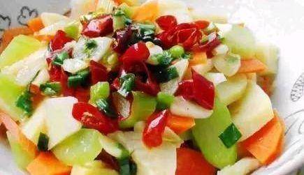 2.生菜、胡萝卜焯水;冬笋用开水煮3-5分钟,捞出沥干,装盘,加盐和鸡精拌匀。