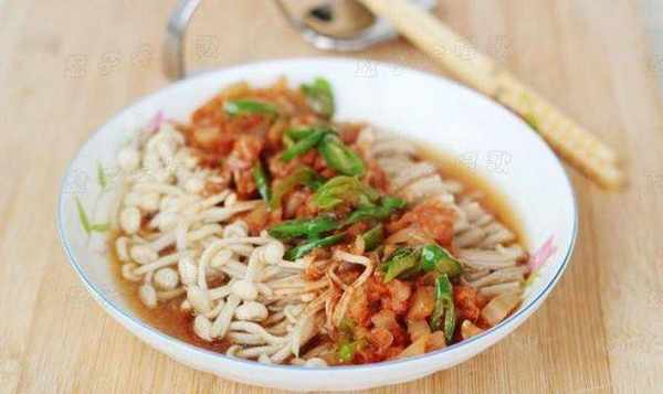 5.将酱油淋在蒸好的泡菜金针菇上。