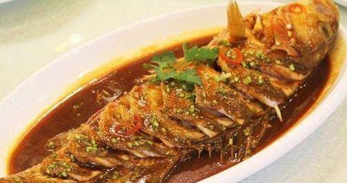 5.煮好后,放入炸好的鱼,用大火煮熟。当汁水减半时,加入盐和胡椒粉调味,继续用大火烹煮以收汁;