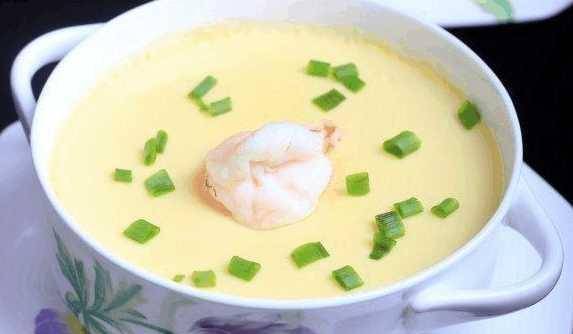 主要材料:鸡蛋200克,鲜虾仁100克,香油适量,盐适量,葱花适量,开水适量。
