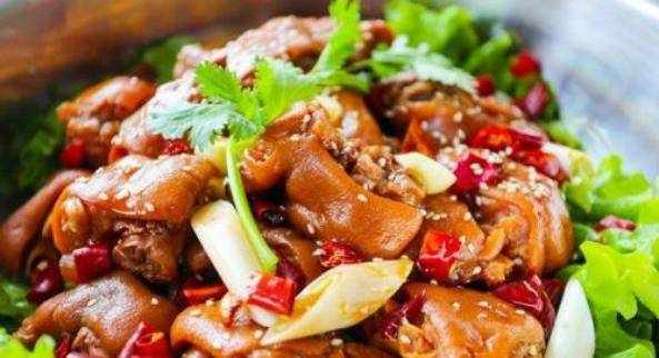 配料表:猪蹄、青笋、姜片、蒜片、老抽、盐、味精、鸡精、桂皮、八角、青草、香叶、干辣椒、辣椒粉、花椒、花椒、糖、酱油