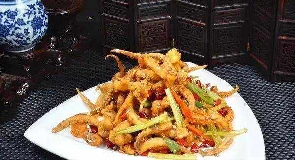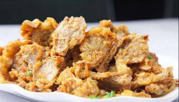 2.在煎锅中用大火加热植物油。当它加热到70%时,加入鱿鱼,炸至外焦里嫩。倒入漏勺沥干油,然后放回炒锅中,用料酒和盐快速炒熟,即可食用。,与胡椒和盐一起食用。