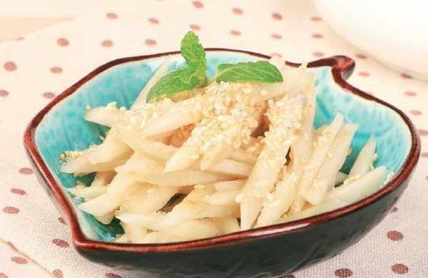 原料:牛蒡100克,柠檬80克,白芝麻30克,白醋3毫升,盐适量,糖适量。