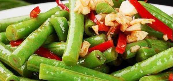 原料豆角250克,红辣椒15克,蒜末7克,盐3克,