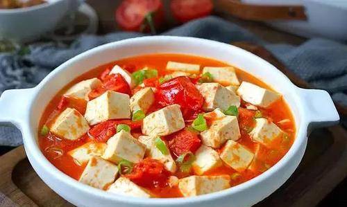 3、炸豆腐切成等份,西红柿洗净,中间划十字刀。