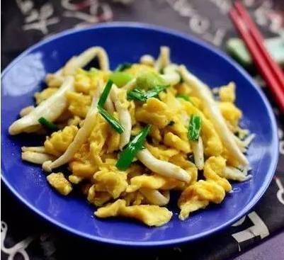 原料:鸡蛋3个,海鲜200克,鸡菇200克,油适量,盐适量,胡萝卜1根,小葱适量,胡椒粉适量。