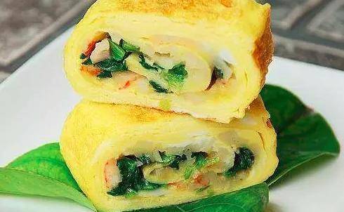 4.将蛋液煎至凝固后,舀成小块即可食用。