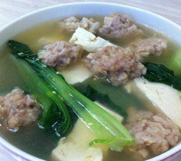 原料:蔬菜、豆腐、丸子、水、盐、香油