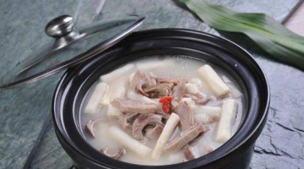 原料:山药200克、五花肉150克、油、盐、姜、胡椒粉、料酒、鸡精