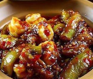 9.加入虾球和茄子,中火煮三分钟。中间稍微转一下,汁就快没了,勾芡出锅。