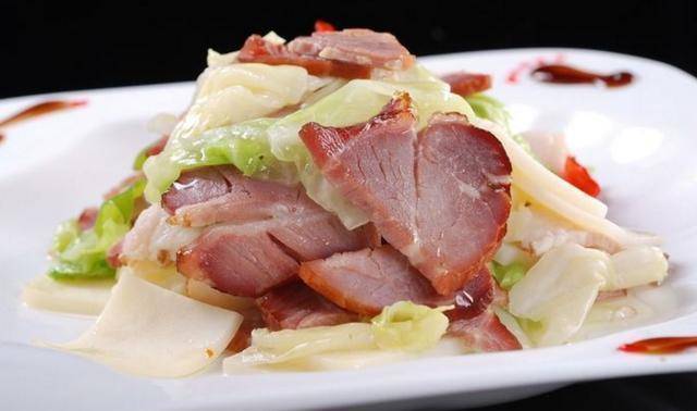 3.白菜用水焯一下。4、取白菜一片,用3刀切匀。