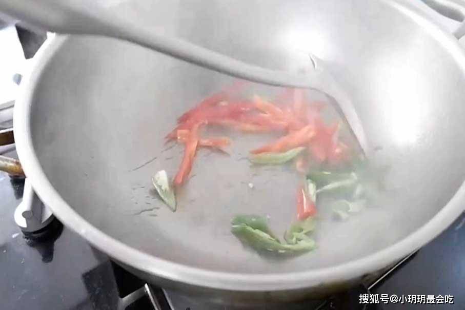 4、在炒制这道菜的时候一定要转中火翻炒,不然的话就会容易焦糊,那样不仅会影响到菜的味道,而且还会影响到菜品的色泽。