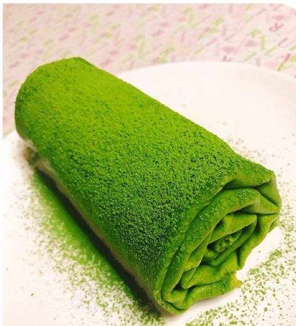 将冷藏后的,卷,撒上一层抹茶粉,用热刀切开就可以啦。