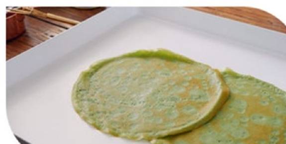 开小火,倒入适量的面糊,均匀转动平底锅。面糊平躺在平底锅底部。这个过程很重要。吃起来口感越好。