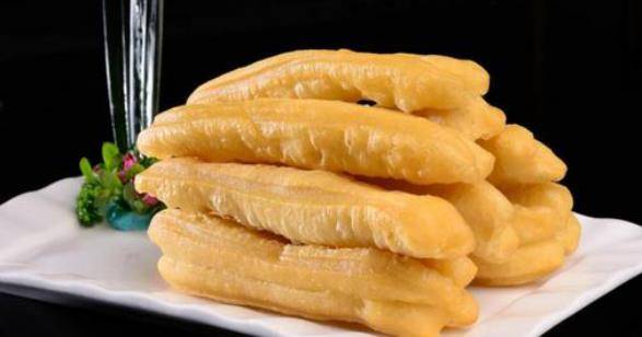 5、锅里放油烧热,将油条放入油温50%的油条中,用小火慢慢炸至表面金黄。