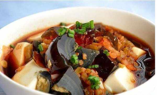 材料:内酯豆腐1罐、皮蛋2个、榨菜适量、酱油适量、醋1茶匙、香油适量。