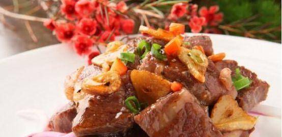 原料:雪花牛肉块250克。葱丝10克,蒜片5克。嘉豪老酱10克,金巴牛肉汁10克,黑胡椒粉3克。