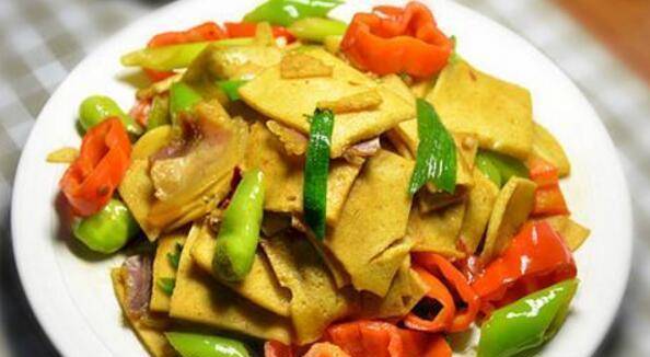 1、豆腐切成片,换刀成三角形。香菇提前泡发,去根撕成小块。将青椒洗净,切段。