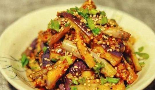 做法:1、茄子去皮洗净,蒸烂后切条;