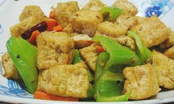 做法:1、买来的豆腐泡用水冲洗干净,青椒切块;
