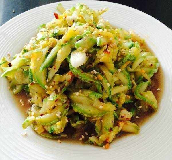 材料:西葫芦、花生碎、干辣椒、胡椒粉、盐、油1个、醋