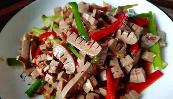 材料:猪腰子、尖椒、红椒、油盐、辣椒油、花椒、大蒜、料酒、生抽、姜