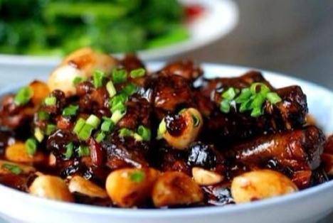 3、接着倒入一茶匙老抽和一茶匙生抽;倒入一小碗水,大火煮开转小火,盖上盖子焖煮10分钟后,开盖收汁撒点白胡椒粉和葱花即可。